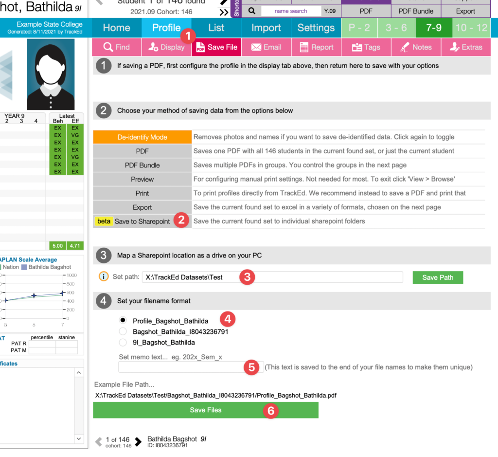 The “Save to Sharepoint” feature allows you to save a set of student profiles, each into its own folder. This feature is intended for sharing data among your staff.