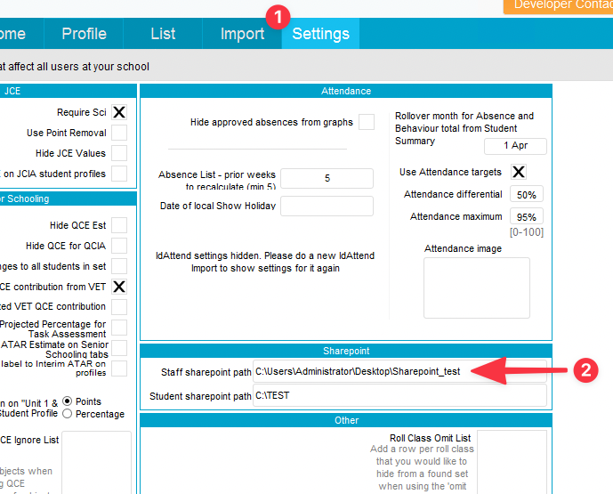 3. Paste this path into the sharepoint setup location on the settings page as pictured